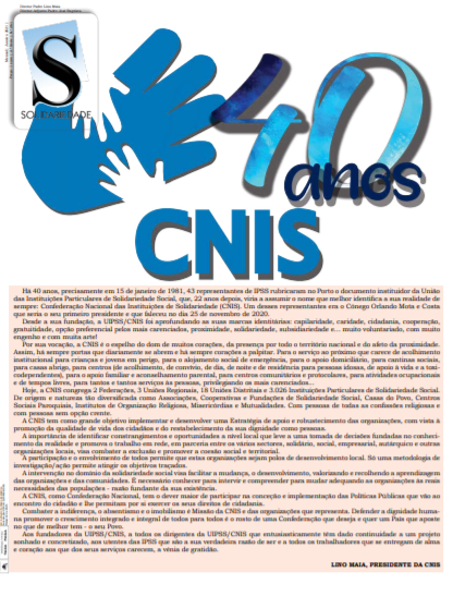 CONFEDERAÇÃO NACIONAL DAS INSTITUIÇÕES DE SOLIDARIEDADE – CNIS – 40 anos