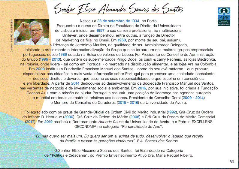 A Associação Portuguesa de Psicogerontologia-APP, Instituição Particular de Solidariedade Social sem fins lucrativos e de âmbito nacional, dedica-se às questões biopsicológicas e sociais inerentes ao envelhecimento e às pessoas idosas, visa a promoção da dignificação, respeito, saúde, autonomia, participação e segurança das pessoas idosas, num quadro de envelhecimento ativo e de solidariedade intergeracional, e de uma sociedade mais inclusiva para todas as idades, promove novas mentalidades e combate estereótipos negativos relativamente à idade e ao envelhecimento.